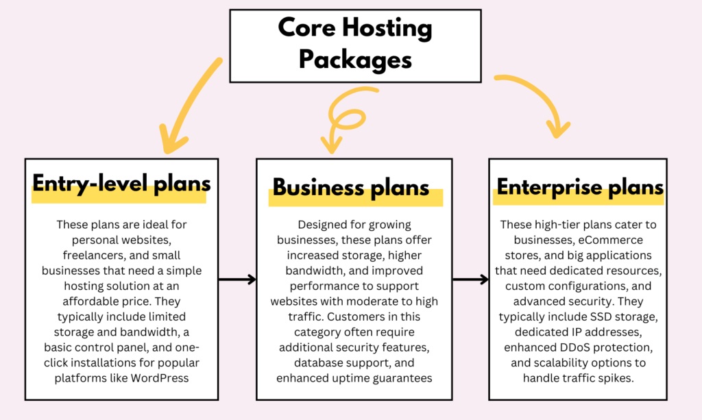 A well-structured hosting package lineup ensures that customers can start small and scale as their needs grow, while also allowing you to serve a diverse range of clients effectively.