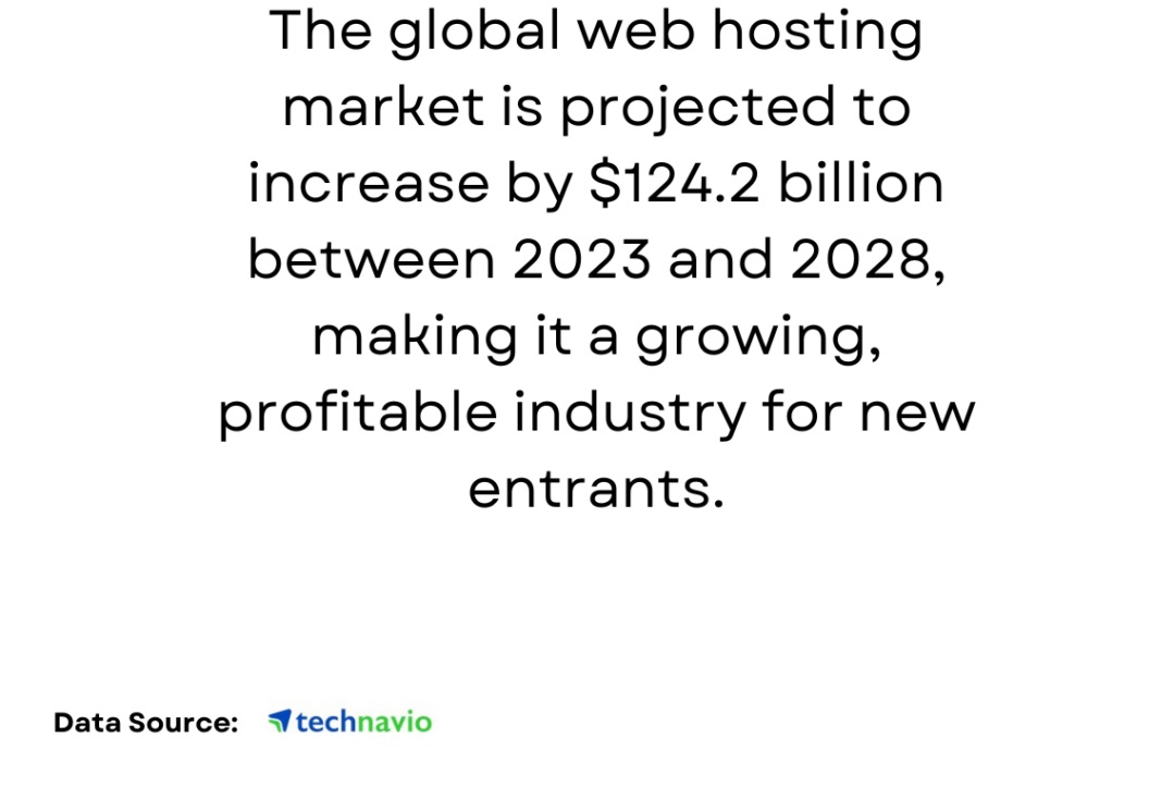 Web hosting is the backbone of the internet, powering everything from personal blogs to enterprise-level applications. As businesses continue to prioritize their online presence, the demand for reliable hosting services keeps growing. The global web hosting market is projected to increase by $124.2 billion between 2023 and 2028, making it a growing, profitable industry for new entrants.