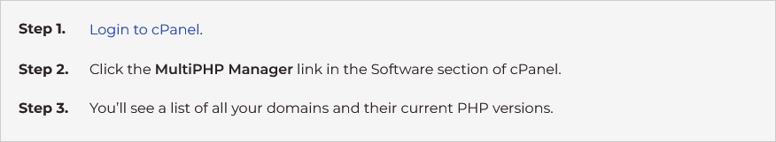 - Click the MultiPHP Manager link in the Software section of cPanel.