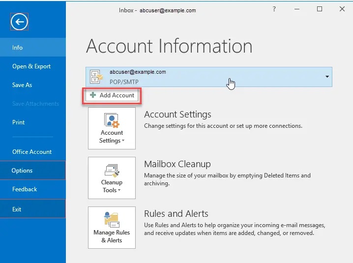 Step 3. Click on Add Account