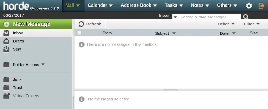 In this tutorial, we will guide you through logging into the Horde Webmail client. Horde, along with RoundCube, and SquirrelMail is one of the most popular Webmail clients. Since Horde uses IMAP, the emails are stored on the server by default. This allows you to send and receive email from any internet connection without having to install an extra email program such as Outlook, MacMail, Thunderbird, etc.